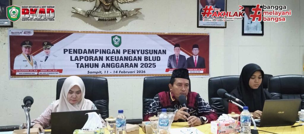 SAMPIT – Pemerintah Kabupaten Kotawaringin Timur melalui Badan Keuangan dan Aset Daerah (BKAD) resmi menggelar kegiatan Pendampingan Penyusunan Laporan Keuangan BLUD Tahun Anggaran 2025. Kegiatan ini berlangsung di Aula Lantai 3 BKAD Kabupaten Kotim, Jl. Jend. A. Yani No. 14, Sampit.
