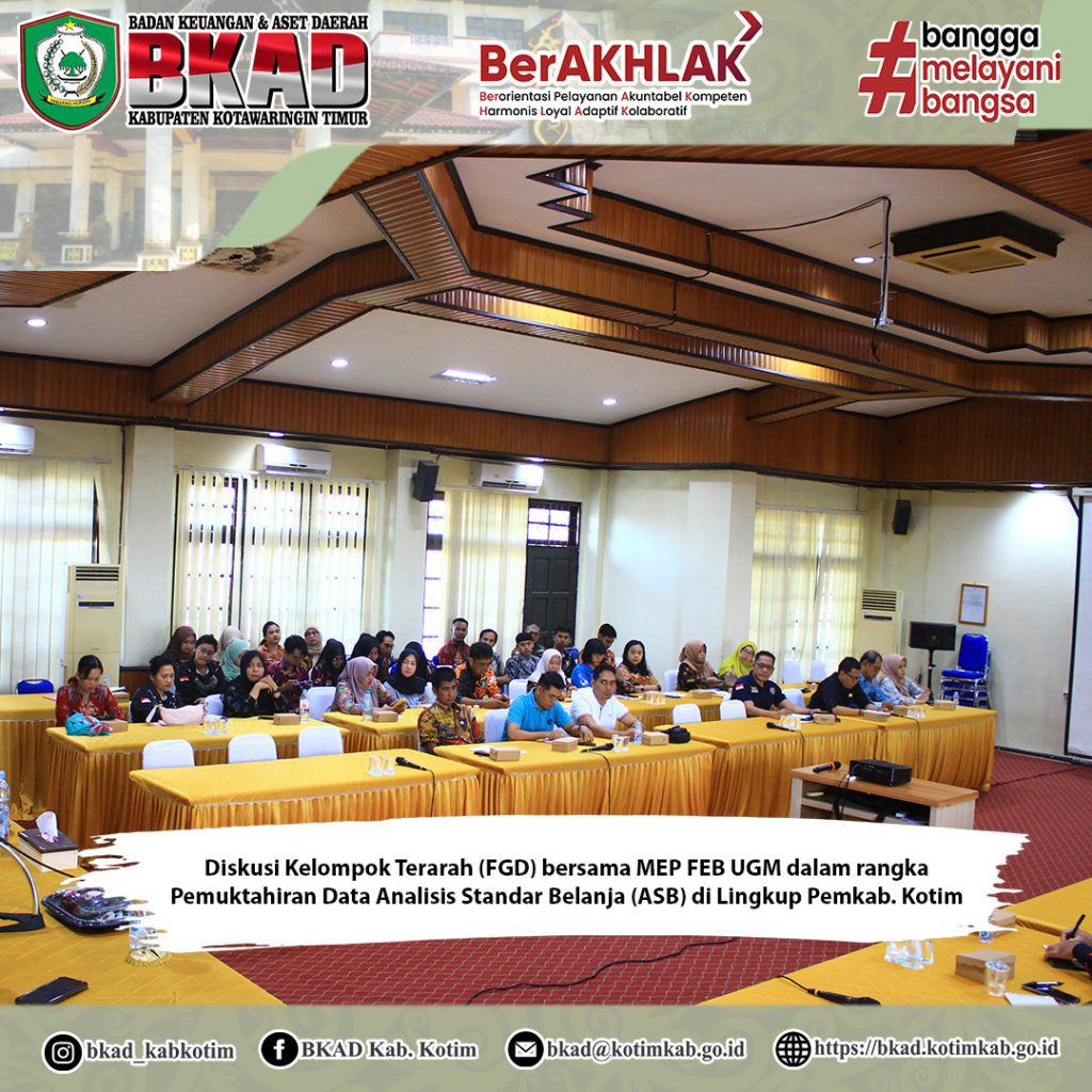 Sampit, 18 Juli 2025 – Badan Keuangan dan Aset Daerah (BKAD) Kabupaten Kotawaringin Timur (Kotim) menggelar kegiatan Diskusi Kelompok Terarah (FGD) bersama Magister Ekonomika Pembangunan Fakultas Ekonomika dan Bisnis Universitas Gadjah Mada (MEP FEB UGM). Kegiatan ini dilaksanakan sebagai bagian dari upaya pemuktahiran data Analisis Standar Belanja (ASB) yang sangat penting dalam mendukung pengelolaan anggaran daerah yang lebih efisien dan akuntabel.