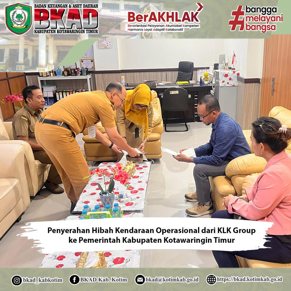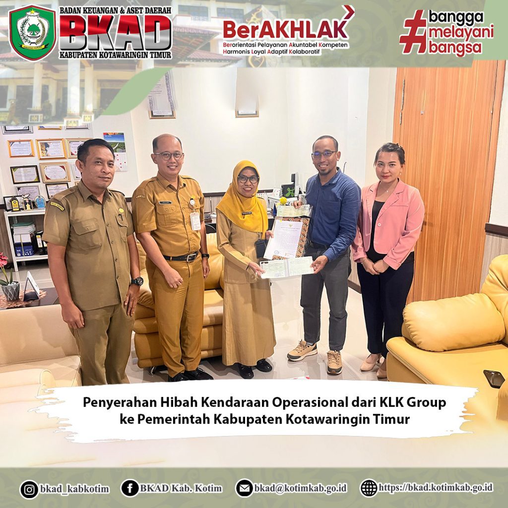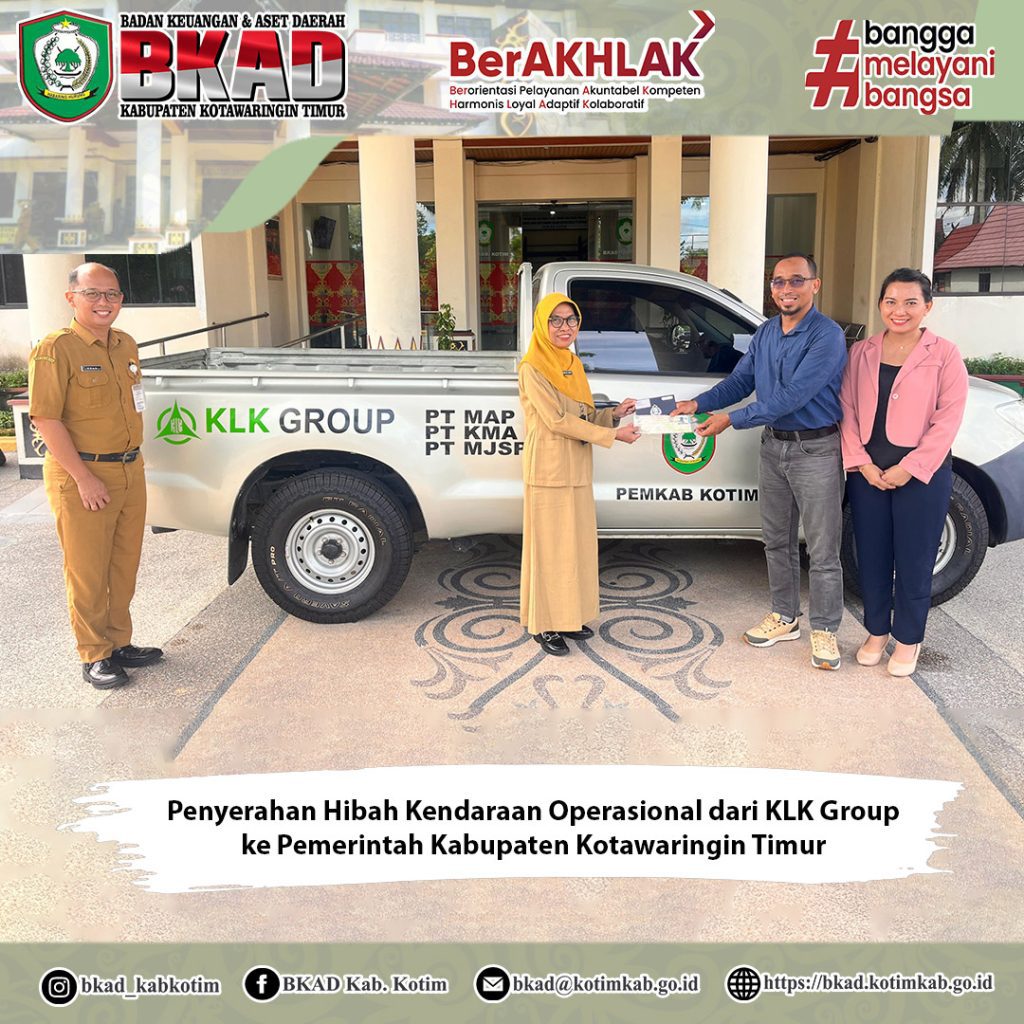 Penyerahan dilakukan di Lingkungan Badan Keuangan dan Aset Daerah Kabupaten Kotawaringin Timur dan dihadiri oleh perwakilan KLK Group, jajaran Bidang Pengelolaan Barang Milik Daerah, serta Kepala BKAD Kabupaten Kotim. Kendaraan operasional yang dihibahkan akan digunakan untuk mendukung kegiatan operasional pemerintahan atau pelayanan kepada masyarakat.