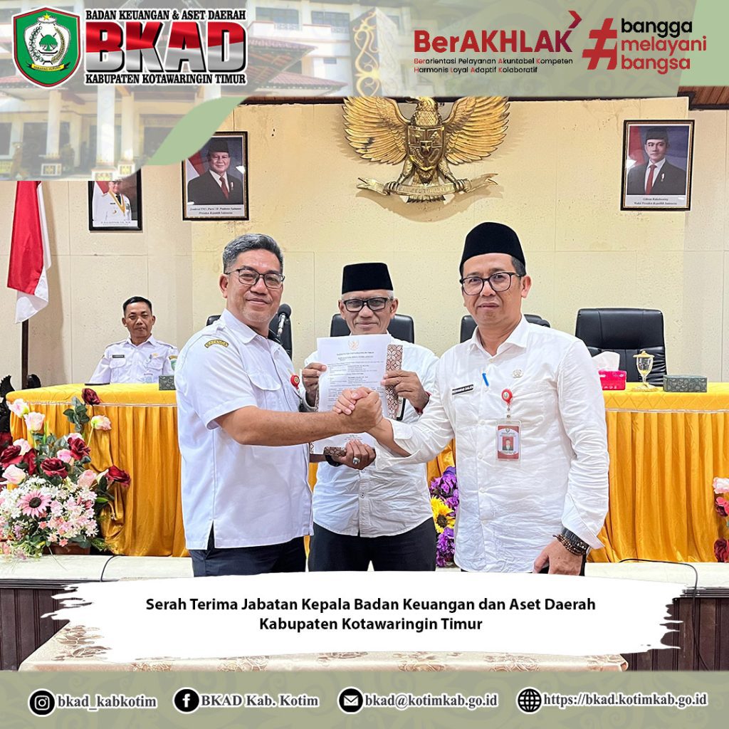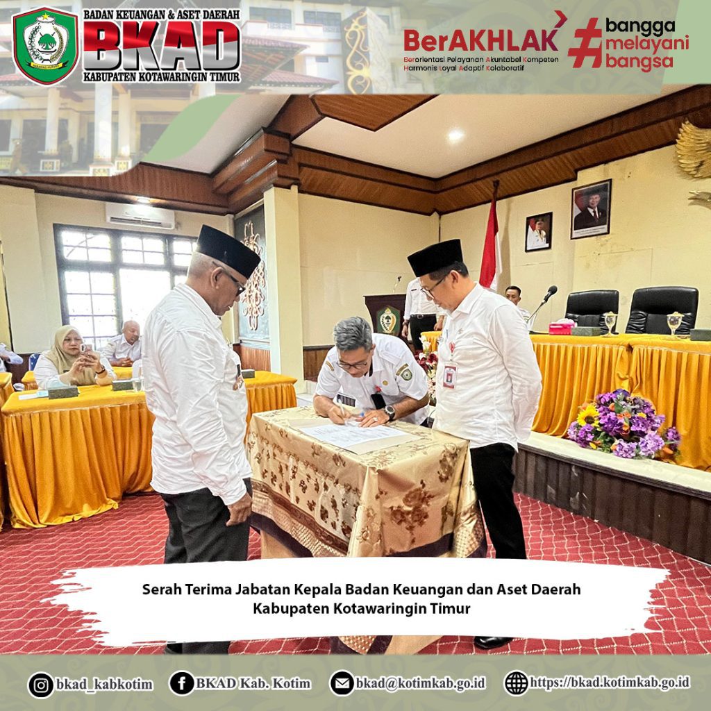 Rabu, 8 Oktober 2025 – Badan Keuangan dan Aset Daerah (BKAD) Kabupaten Kotawaringin Timur mengadakan kegiatan Serah Terima Jabatan Kepala BKAD di Aula Lantai III Kantor BKAD Kabupaten Kotawaringin Timur.
